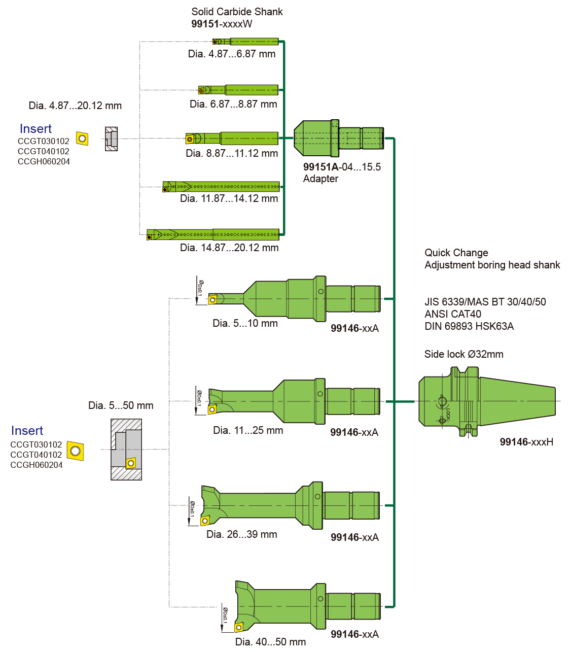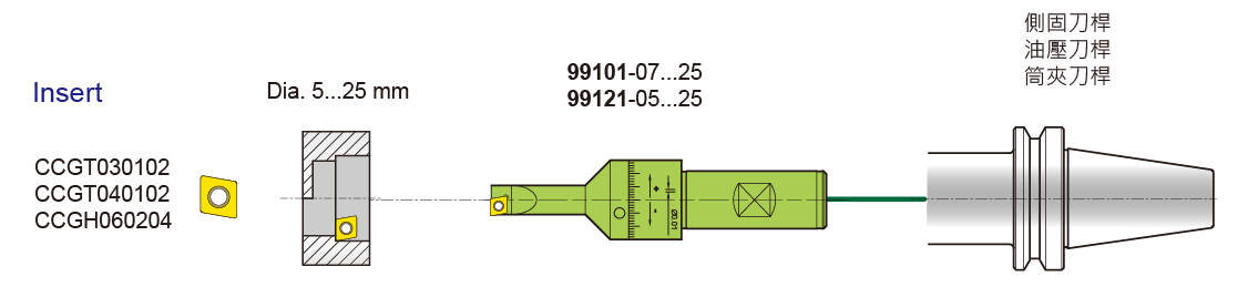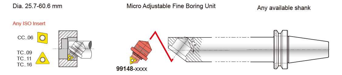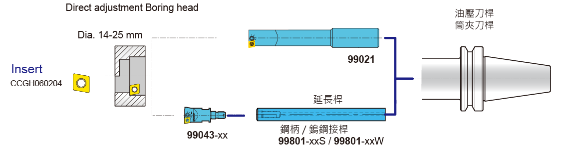 本結構主要是利用刀片斜邊角度位置不同,產生直徑方向微量之尺寸變化,此結構應用於單尺寸搪刀,深孔搪刀,特殊搪刀…,可輕易控制μ之精度