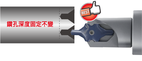 i-Center是耐久的註冊商標,世界首創捨棄式刀片中心鑽,擁有多國專利。只需在使用首次設定刀具長度,大幅提昇換刀效率。