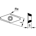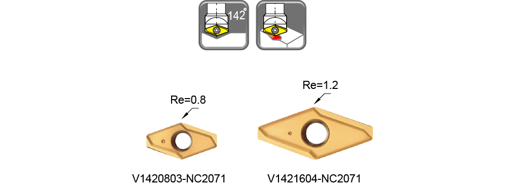 • NC2071 :• 高正角切削刃口 •泛用材種,適合鋼鐵,鑄鐵 •刀片有2個切削刃口