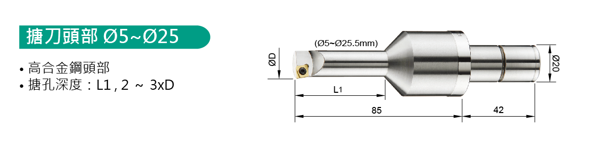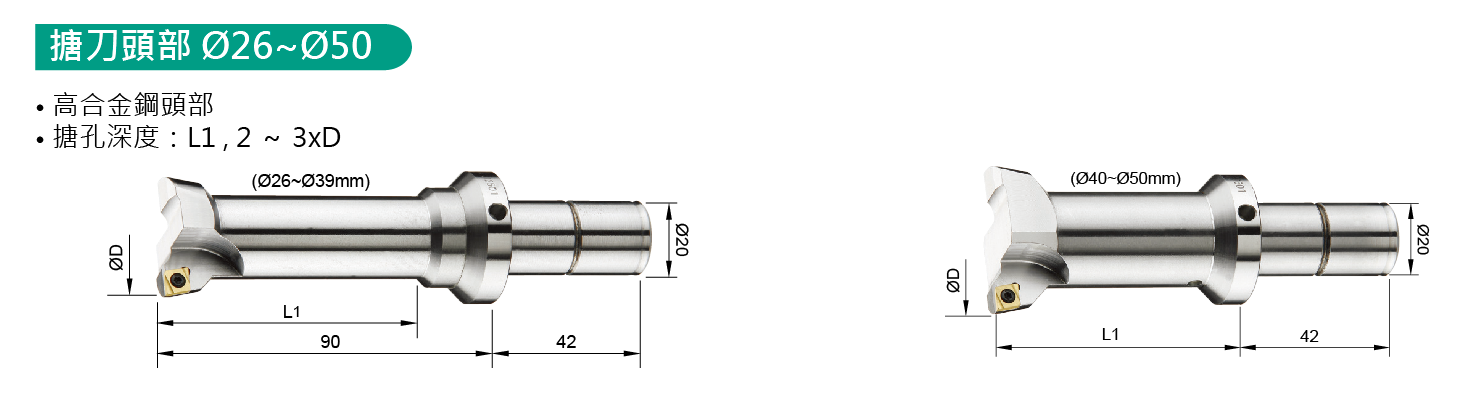 ● 階級孔,加倒角,加平面特殊搪刀頭部可訂製