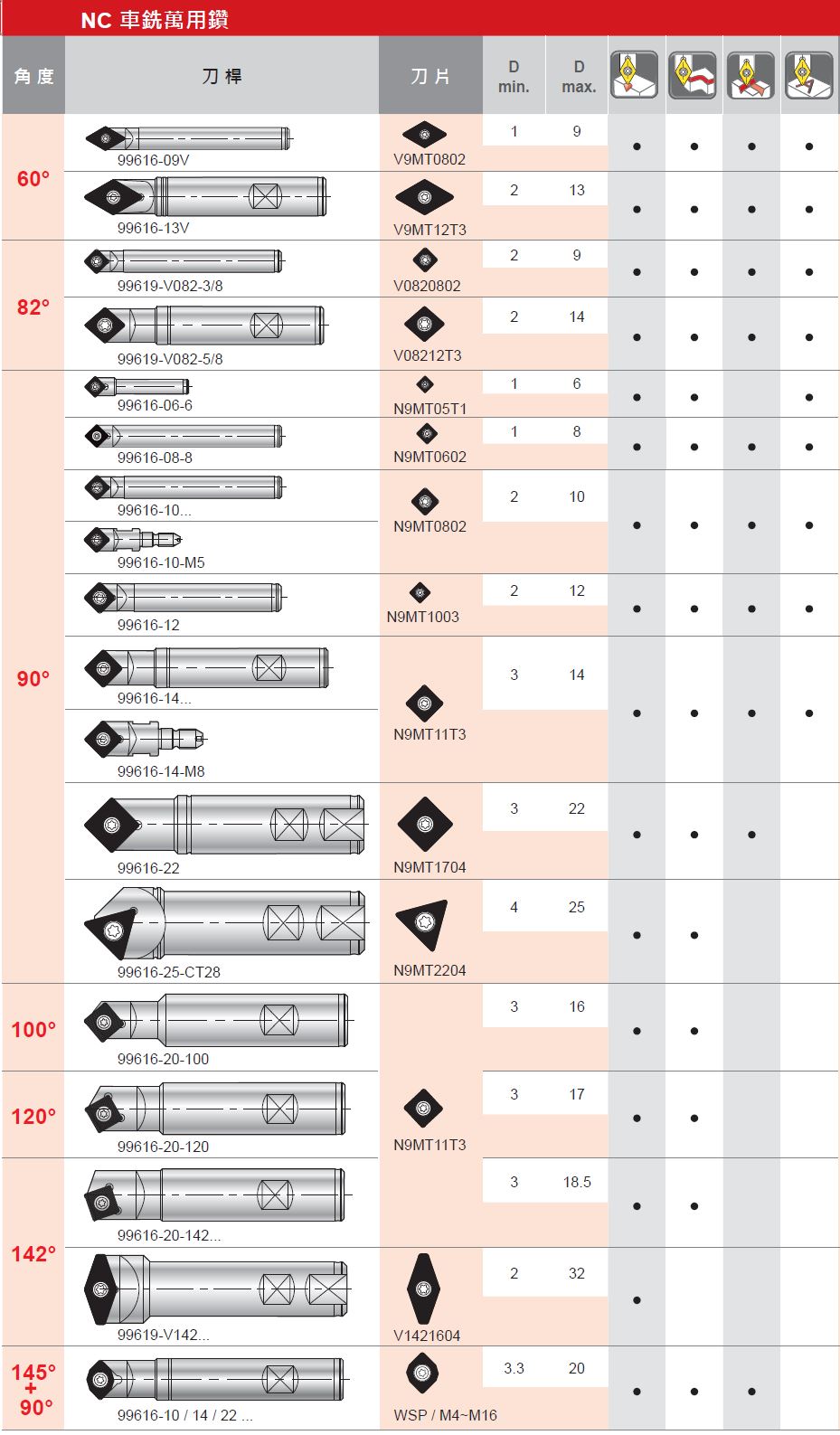 NC車銑萬用鑽,高效率,低成本,捨棄式車刀銑刀,車床、銑床都可使用,取代定位鑽及其它刀具多樣之功能(中心孔,倒角,車端面,雕刻,車槽),切中新一代複合式工作母機對新型多功能刀具的殷切需求,適用CNC車床,車銑中心機和切削中心機。