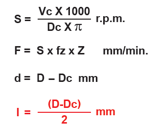 | Cutting time ( T ) | fz = Feed rate mm/tooth | |