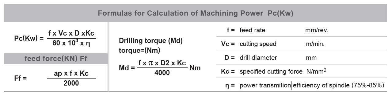 工件材質分類計算由於切削加工與機台操作樣式多元。以下根據ISO標準將材料簡略分類來劃分加工參數數值參考, 有效參數指"特定切削力",請參照下方表格與公式: (更詳細的材料分類表詳見公司網站)。